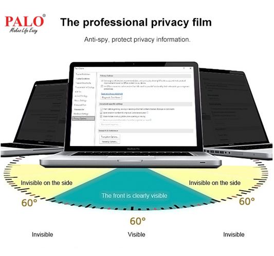 PALO computer privacy filter makes it difficult or impossible for someone to see the screen without being directly in front of it thereby prevent wandering eyes from absorbing confidential information. Its anti-glare feature reduces the strain on eye thereby helping you work longer.