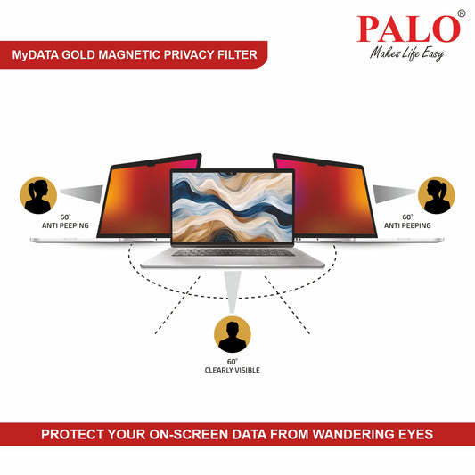 PALO computer privacy filter makes it difficult or impossible for someone to see the screen without being directly in front of it thereby prevent wandering eyes from absorbing confidential information. Its anti-glare feature reduces the strain on eye thereby helping you work longer.